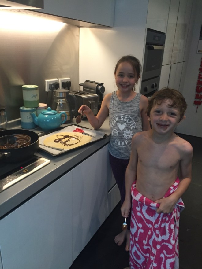 Drizzling the Nutella…